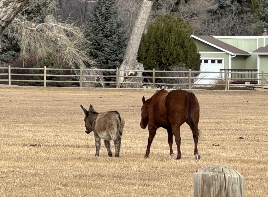 Donkeys are their own special creature. I’ve long wanted one — and this could be the start of an addiction. Donkeys are different than horses and we’ll have to be students with Mickey. They are social animals and need friends.