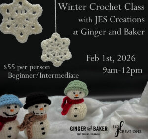 This winter themed crochet craft class will focus on classic crochet foundations that can be transferred to any project. These techniques include: the magic ring, single crochet, chain stitch, and more. While working through these techniques in class, you will walk away with your own finished crochet projects (a snowflake and 3D plush snowman), a crochet hook, and extra yarn to continue crocheting on your own when class ends. This class is for beginner to intermediate crocheters. No experience necessary.